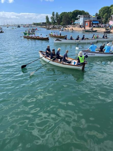 The Bursledon Gig harks back to the days when every waterman, boatyard worker and fisherman on the river would row to work. The latest boats are based on a GRP version of an oyster dredging punt they are sea worthy, stable and sturdy but easily driven.