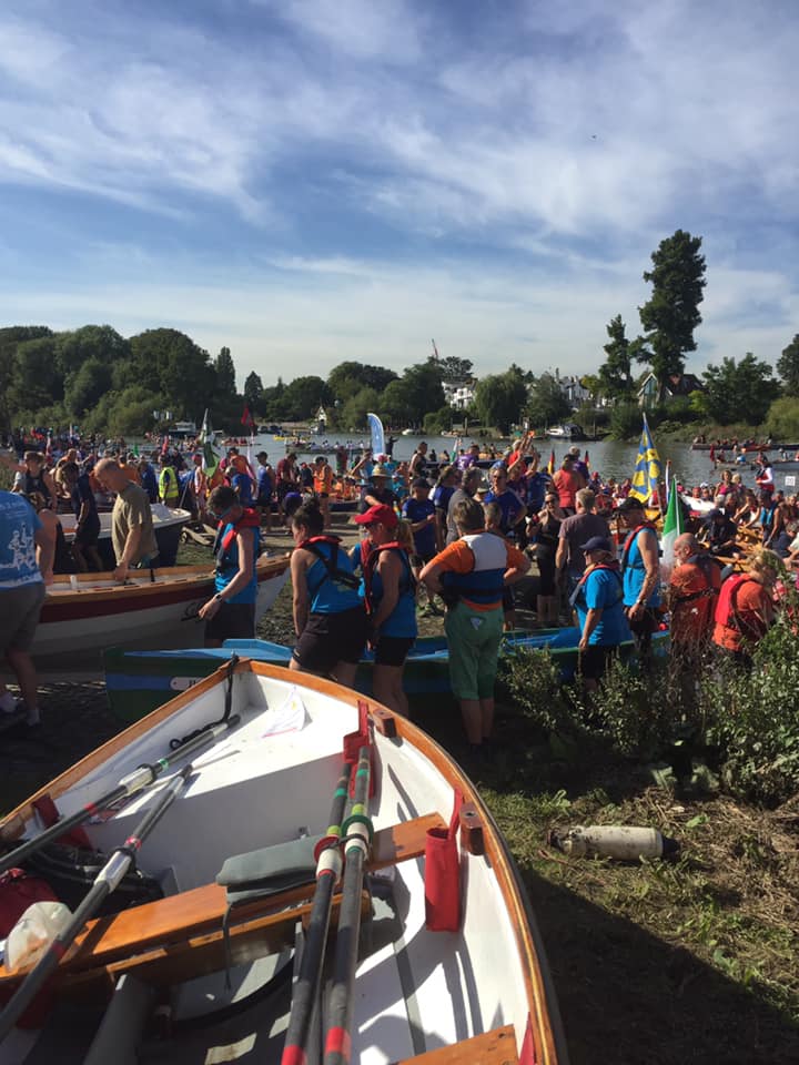 This year there were 7 Bursledon gigs from the Hamble River in the Great River Race; 3 from the Sea Scouts, 1 from the Elephant Boatyard and 3 boats from Hamble River Rowing. The Elephant boys came 4th overall in a race with over 300 rowing boats of varying size and shape from Dragon boats to St Ayles skiffs.