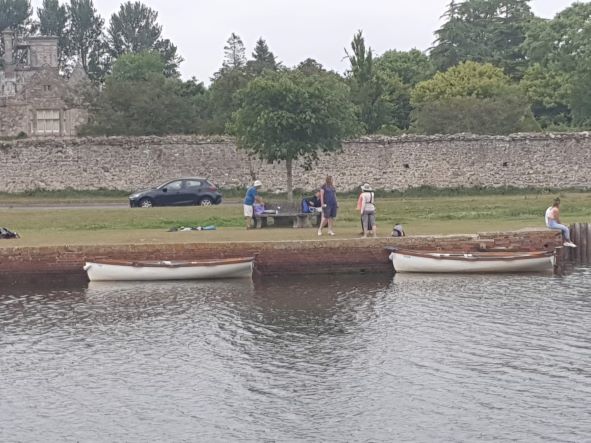 3 boats rowed up the Beaulieu River from the Royal Southampton Yacht Club at Gins to have a picnic on the green outside Beaulieu Palace. It was a fine day so there was an obligatory ice cream stop at Buckler's Hard on the return journey.